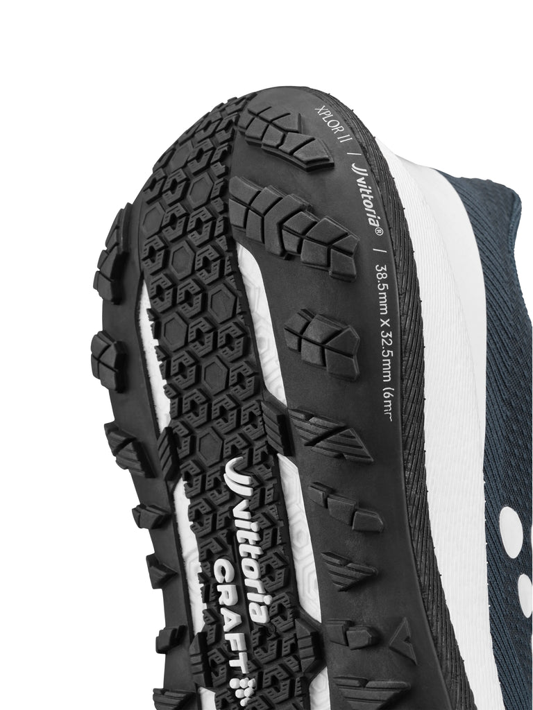Denne unikke ydersål er fremstillet i samarbejde med den verdensberømte cykeldækproducent Vittoria og har fiskeskælskanter og progressive mønsterstruktur, inspireret af Terreno Dry- og Terreno Mix-dækmønstrene. Resultatet er en sål, der er optimeret til maksimal hastighed, når du bevæger dig væk fra byens gader, og som tilbyder enestående greb og holdbarhed i ethvert terræn.